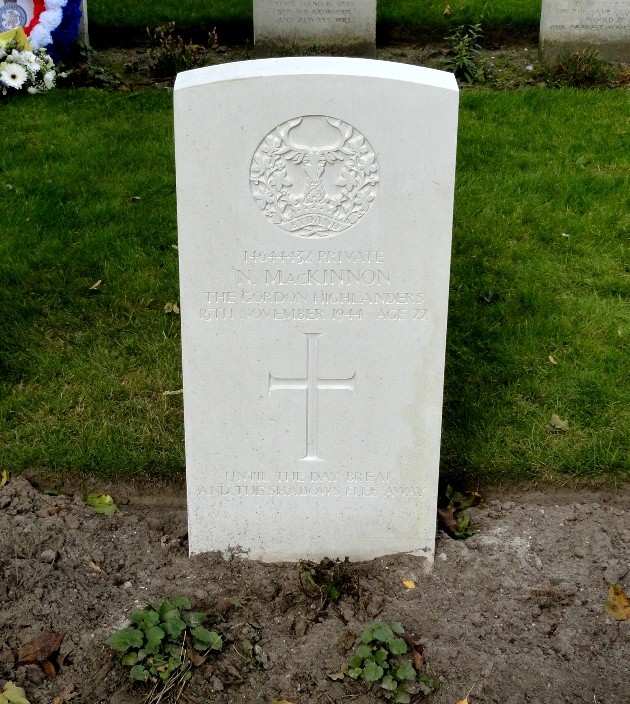 - Details:From his service number Private MacKinnon would probably have been conscripted possibly in late 1942 or early 1943 and given a General Service Number. From July 1942, army recruits were enlisted in the corps for their first six weeks so that their subsequent posting could take account of their skills and the Army's needs. After his initial training he would have joined the 1st Battalion, possibly in Sicily but perhaps more likely when they returned from Sicily in November 1943 at their base in Buckinghamshire, prior to the invasion of Europe in 1944.