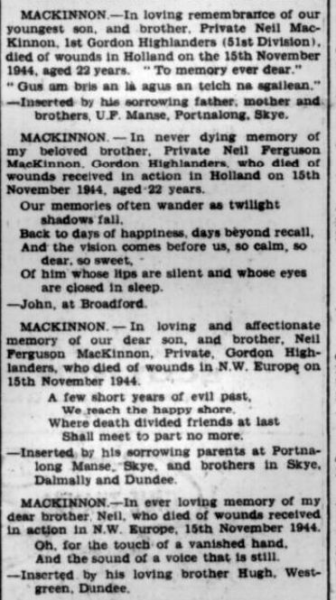 - Family:Son of Donald and Mary Anne MacKinnon of Portnalong, Isle of Skye.