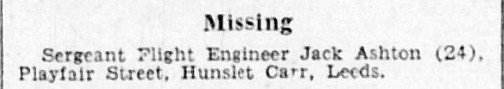 • Familie:Son of Arthur and G. Edith Ashton, of Leeds, Yorkshire; husband of Eileen Ashton, of Hunslet Carr, Leeds.