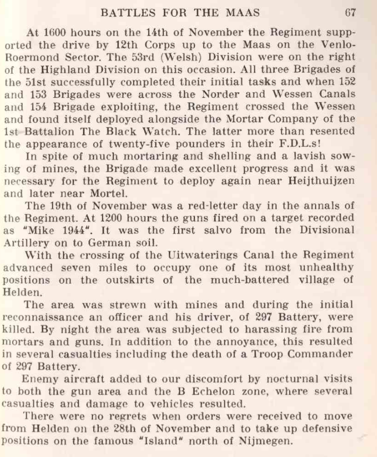 - Landmacht onderdeel:A-troop, 297th battery, 126th (Highland) Field Regiment Royal Artillery