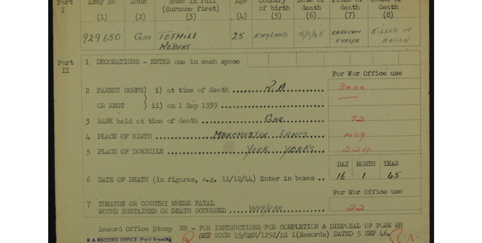 Robert Tothill Gunner - 13th (Honourable Artillery Company) Regiment
