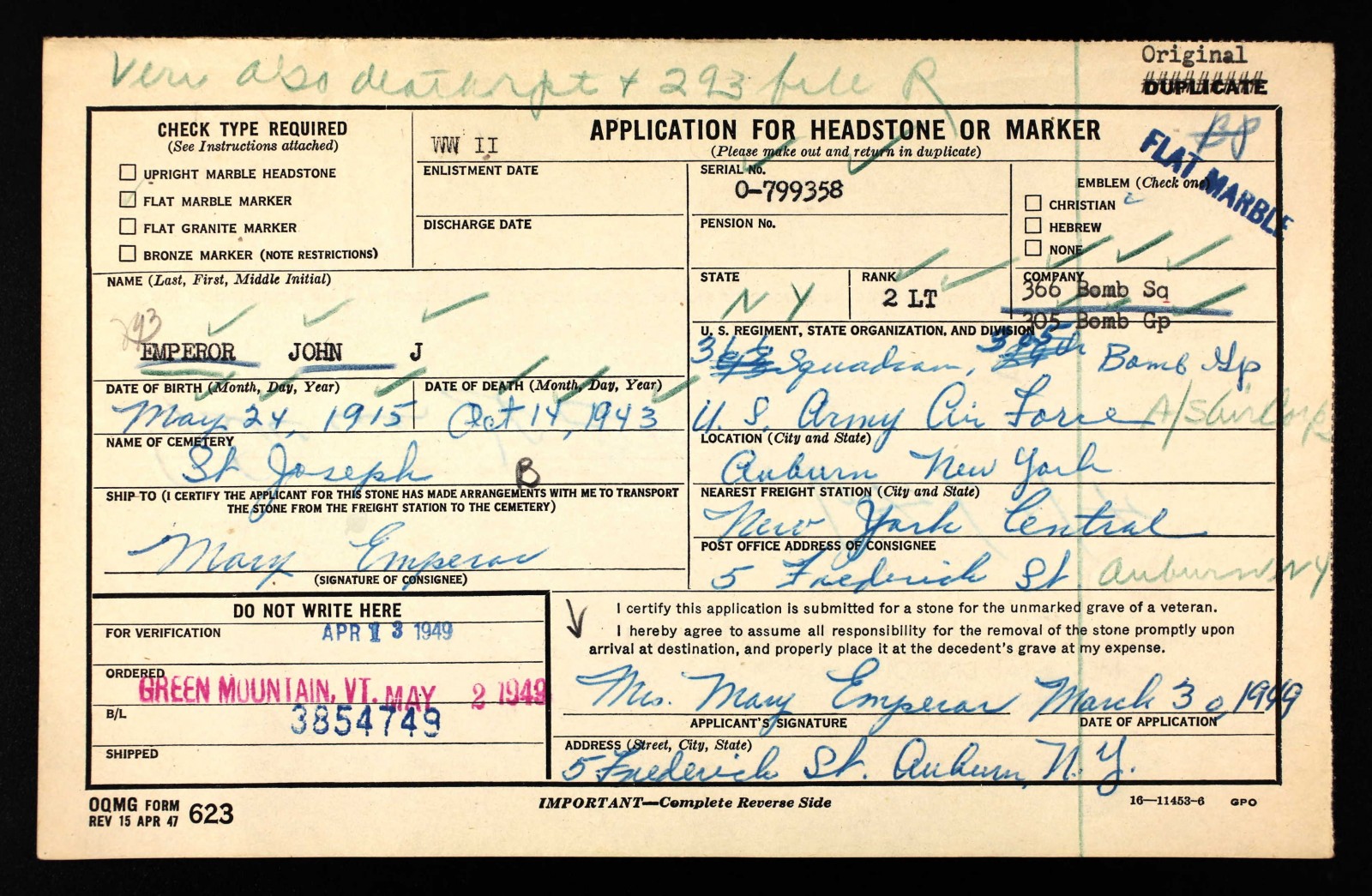 John Joseph Emperor Lieutenant - 366 Sqdrn/305 BG