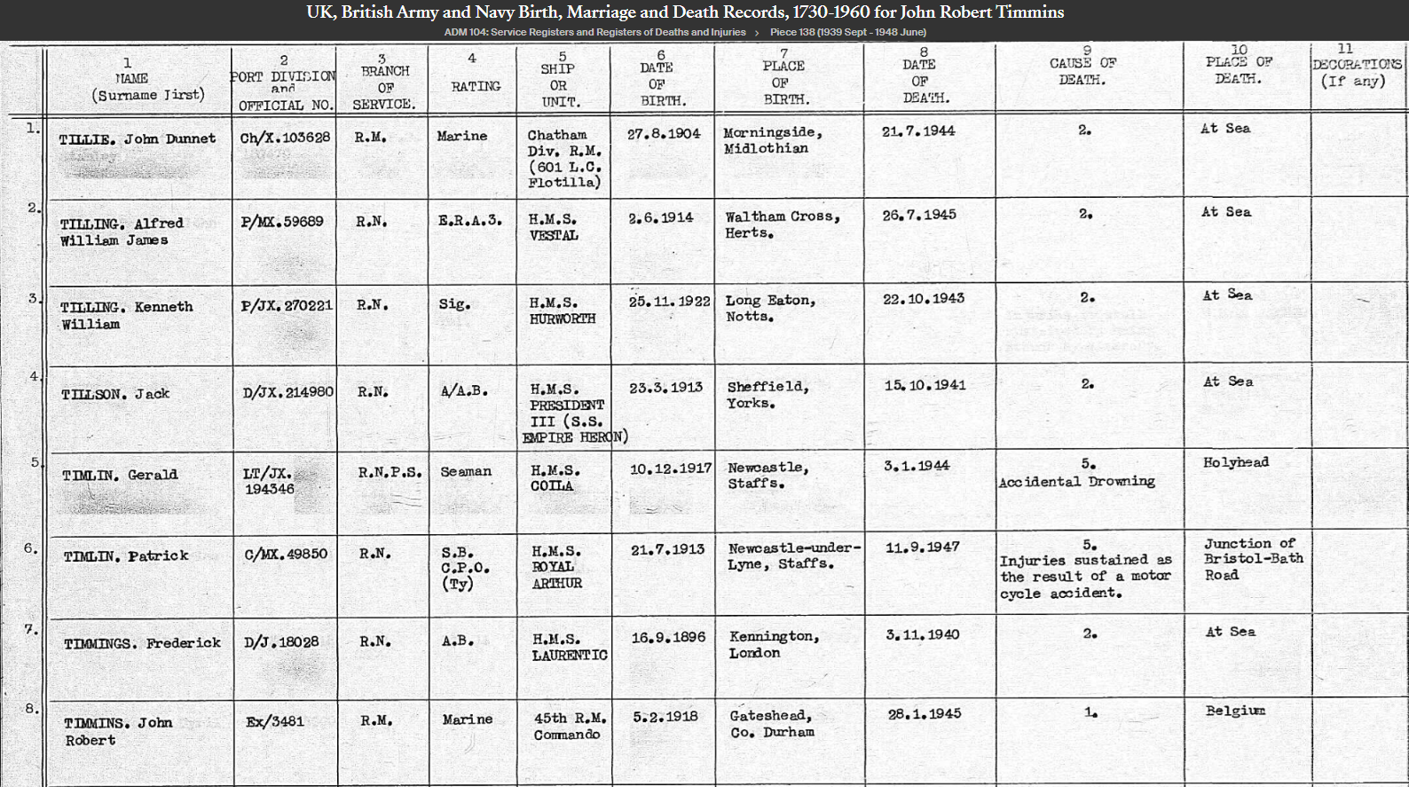 • Familie:Son of Charles and Annie Timmins, of Bensham, Co. Durham.