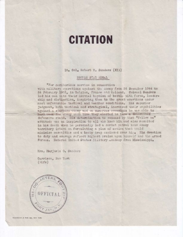 Robert Herbert Sanders Lieutenant colonel - 1st Battalion, 291st Infantry Regiment