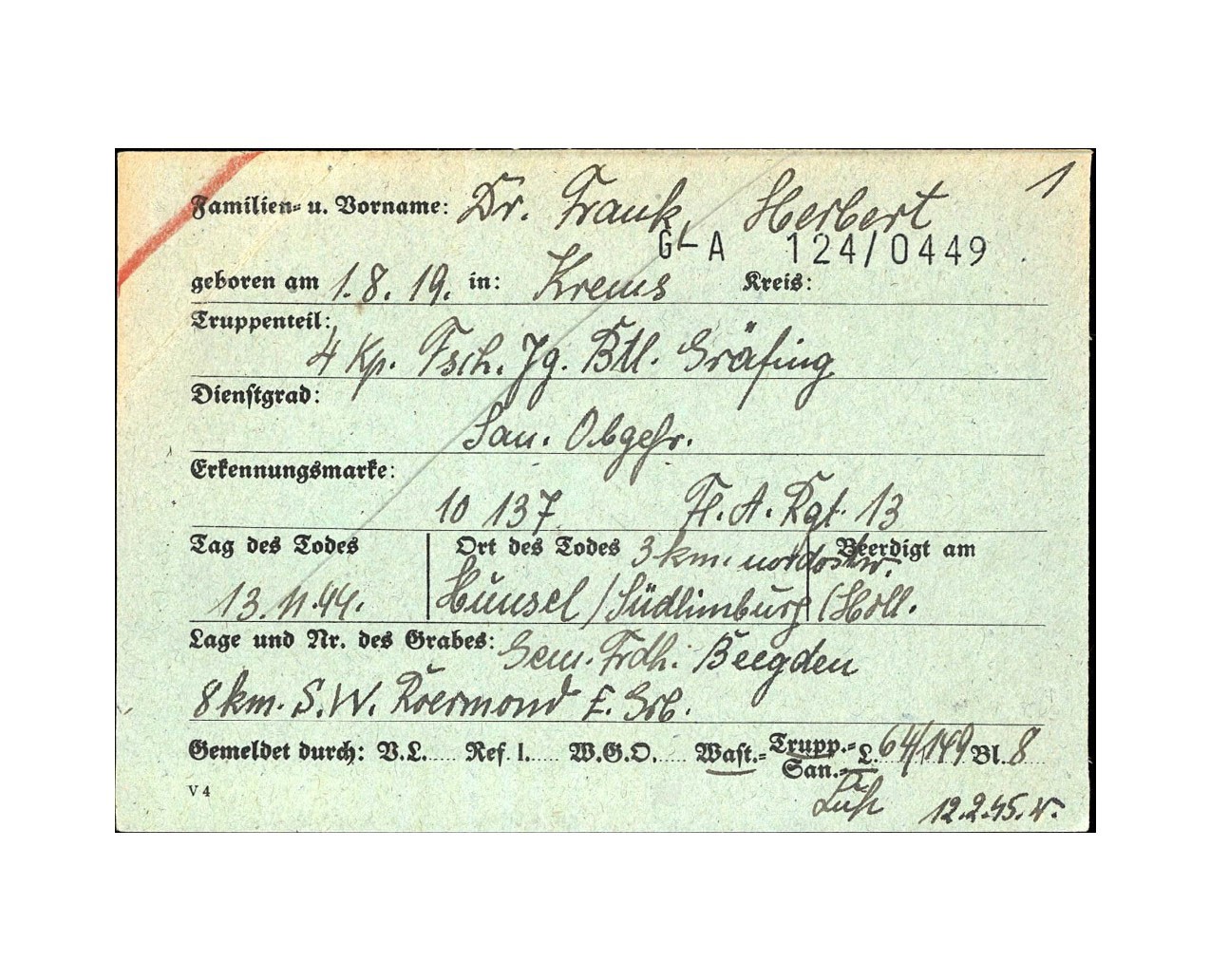 Herbert Frank Sanitäts Obergefreiter - 4-Fallschirmjäger Bataillon (Grafing)
