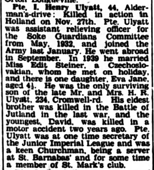 - Familie:Son of Henry Robert and Caroline Ulyatt; husband of Edith Ulyatt, of Peterborough, Northamptonshire, England.