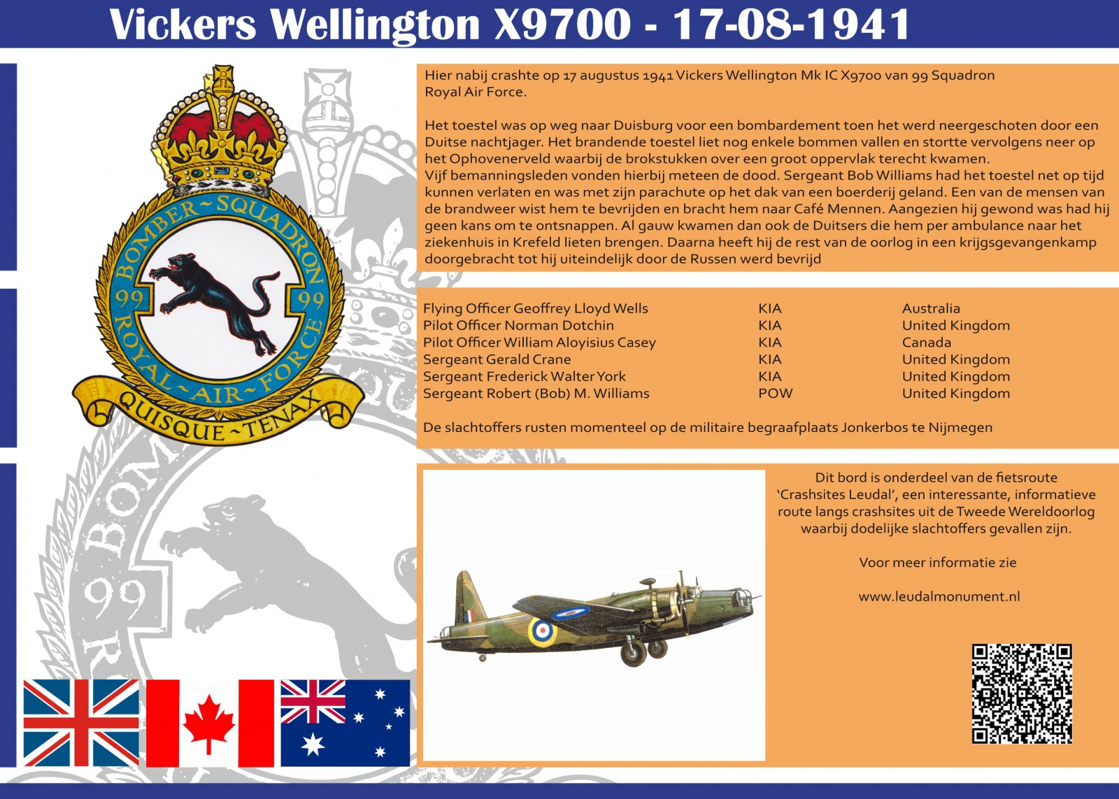 • Type vliegtuig:Vickers Wellington Mk IC