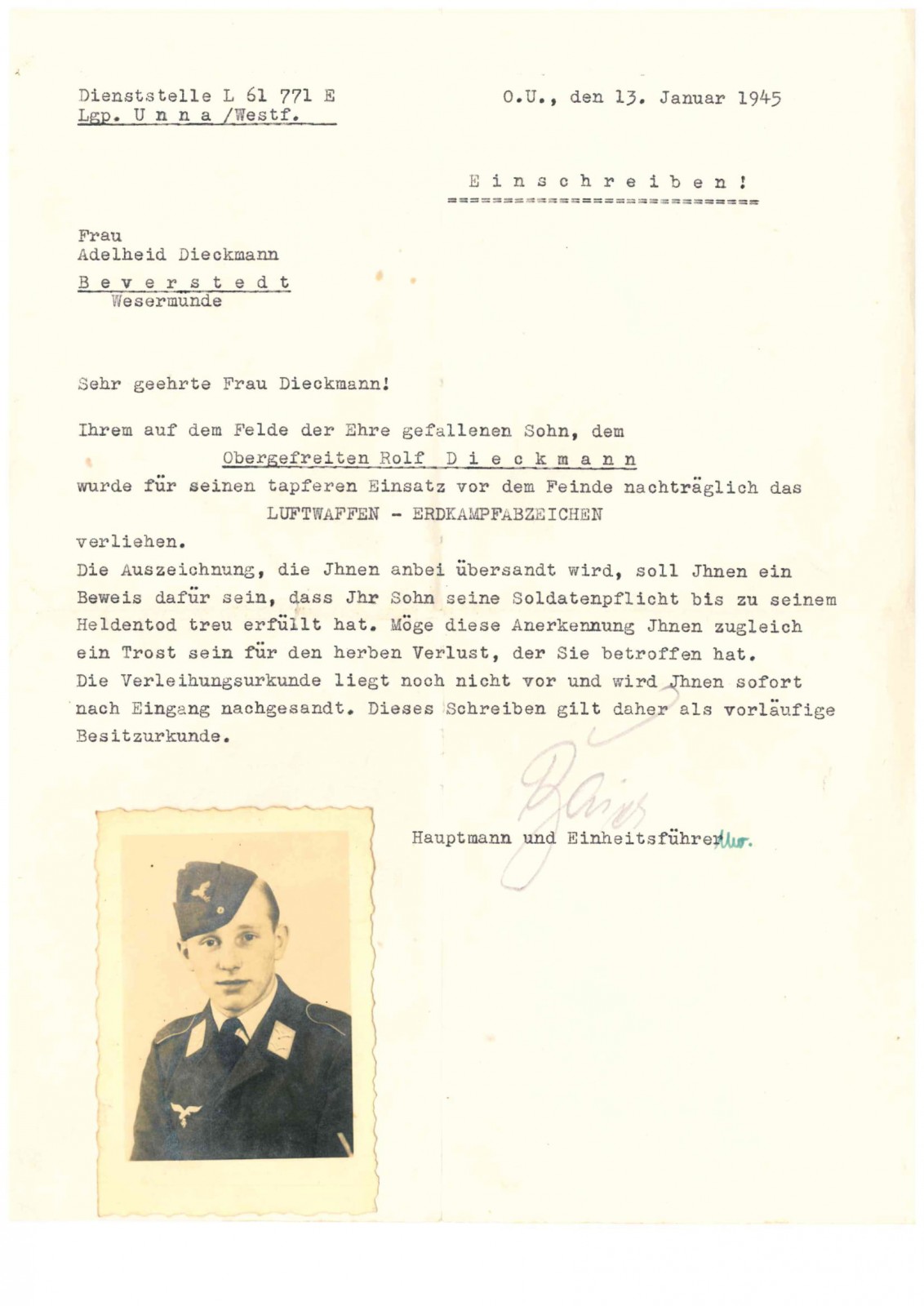 • Onderscheiding:Erdkampfabzeichen der Luftwaffe